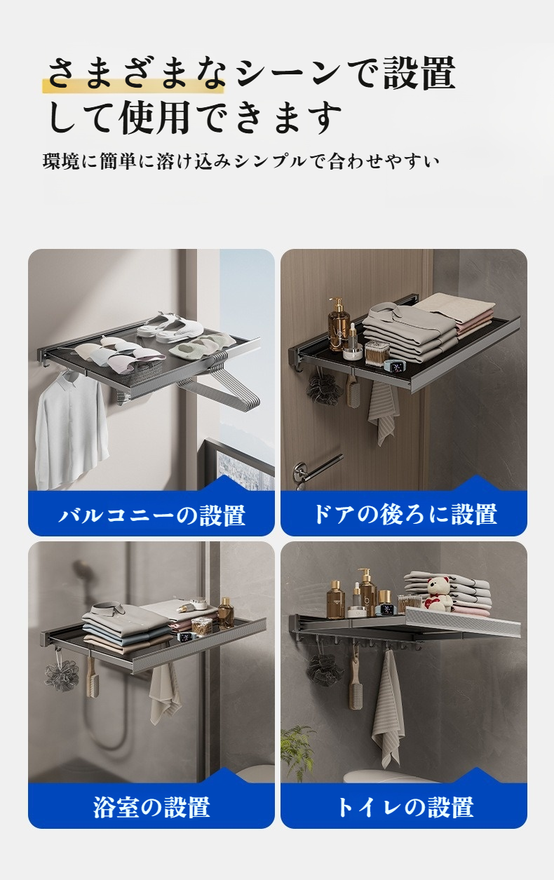 物干し 壁掛け物干し 折りたたみ 壁掛けハンガー メッシュ 物干し 洗濯物干し 室内 伸縮式ベランダラック 調整可能フック付き コンパクト 小型住宅用